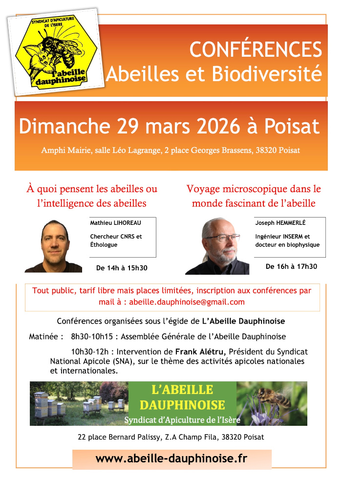 Dimanche 29 mars, l’Abeille Dauphinoise organise une journée où 2 experts de renommée internationales interviendront.