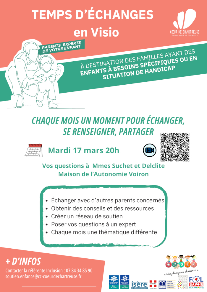 Le prochain rendez-vous sera  MARDI 17 MARS 20h avec Mmes Suchet et Delclite, de la Maison de l’Autonomie de Voiron